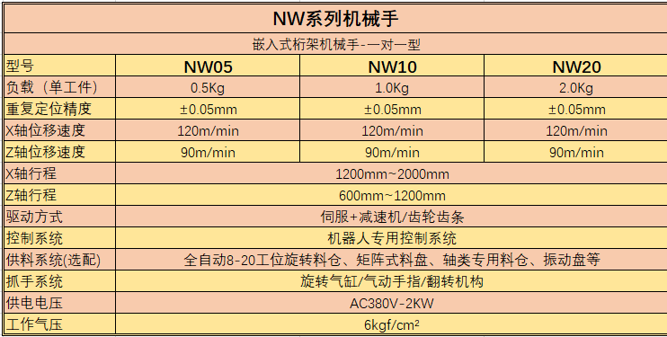 NW系列機(jī)械手,作為一款機(jī)械手與機(jī)床固定的一體機(jī)設(shè)備,解決了因機(jī)床位置偏移造成的位置偏差故障率,增加高精度加工的穩(wěn)定性。同時(shí)也方便了客戶(hù)現(xiàn)場(chǎng)布局的隨意性。